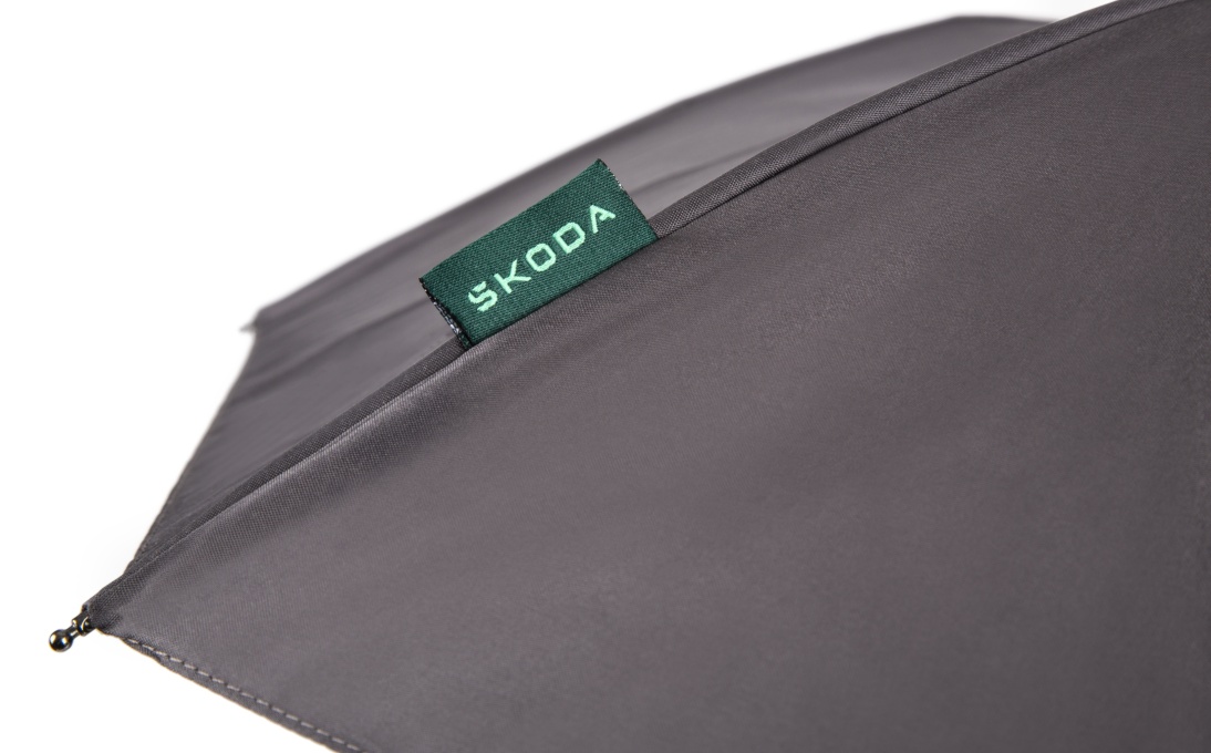 Зонтик достаточно большой, чтобы эффективно защитить от дождя, одновременно достаточно мал, чтобы в сложенном виде поместиться в специально предусмотренные ниши в дверях Вашего автомобиля. Автоматическая система „open&close” гарантирует, что на вас не упадет ни капли. Прочная металлическая конструкция без проблем выдерживает натиск ветра. Пластиковая ручка имеет эргономичную форму, приятна на ощупь и имеет надпись Skoda. Производится чешской фирмой Doppler.